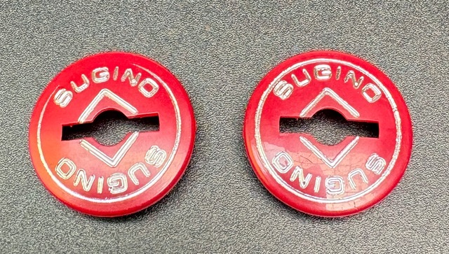 スギノ製のプラスチック製クランクキャップ(新品・未使用)です。 当時の純正パーツとして多くのモデルに採用されていたもので、現在では入手が非常に難しいデッドストック品です。 軽量で扱いやすく、アルミとはまた違ったクラシックな雰囲気を持っています。 “Sugino”の刻印が入ったシンプルなデザインで、70〜90年代のロードバイクやピストのレストアに最適です。 ブランド:Sugino(スギノ) 状態:新品・未使用(デッドストック) 材質:プラスチック(樹脂製) カラー:レッド セット内容:左右ペア 備考:長期保管によるごくわずかな擦れあり(未使用) スギノ純正のオリジナルキャップ。 ビンテージの雰囲気をそのままに、自転車の仕上げを引き立てます。