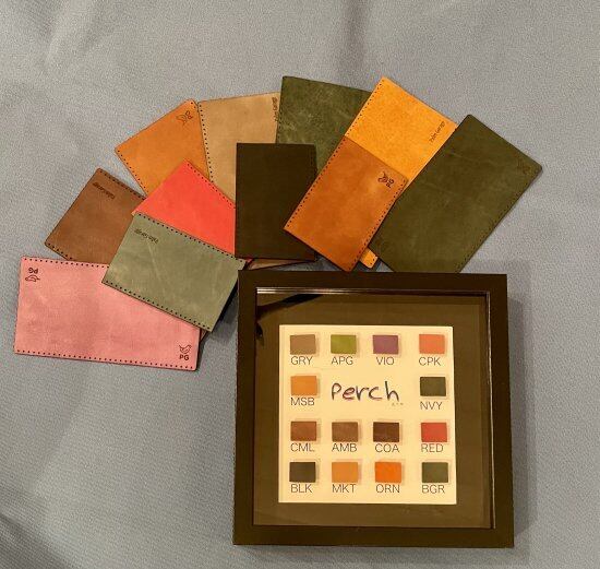 商品に使われている革は、植物タンニンなめしのヌメ革を染料で染めた後、一枚一枚手塗りでワックスを塗り込み仕上げられています。
